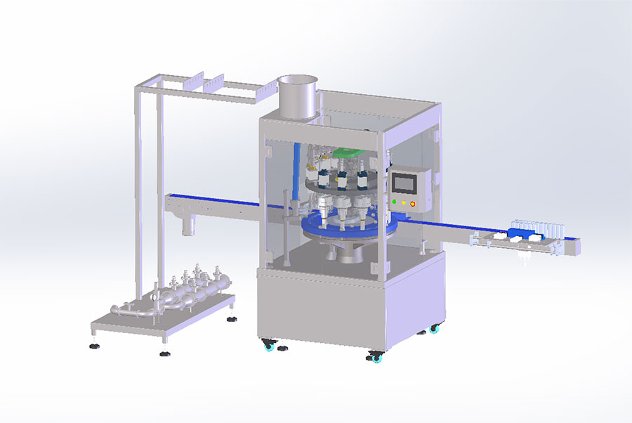 產(chǎn)品描述設(shè)備如下圖1: 此產(chǎn)線配置產(chǎn)品有(從前端到后端):回轉(zhuǎn)式高速上閥機組、離心式高速理閥機、供閥提升機、6工位高精度計量缸&單組增壓泵、6頭封口&6頭充氣一體機(正壓防爆電箱和防爆人機界面)。具有操作簡單,人機交互友好,故障指示等優(yōu)點。便于排查和排除故障。2.各機組完成的生產(chǎn)工藝和性能參數(shù):A.回轉(zhuǎn)式高速上閥機組如圖2所示 圖2 型號:SG-QGQW25-150HSF回轉(zhuǎn)式高速上閥機,16工位回轉(zhuǎn)式高速上閥機汲取國外先進設(shè)備技術(shù)研發(fā)而成,機組由閥門提升機,轉(zhuǎn)盤式離心理閥機(此設(shè)備根據(jù)閥門形式非標定制)和高速回轉(zhuǎn)上閥機構(gòu)成。工作原理為一個送閥軌道...